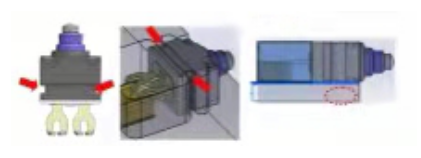 “通過(guò)卡槽定位裝配”D2GW開(kāi)關(guān)與客戶部件裝配時(shí),開(kāi)關(guān)本體的卡槽作為定位并可卡入,裝配十分簡(jiǎn)易。并且和其他通過(guò)定位柱或定位孔安裝的產(chǎn)品相比,通過(guò)卡槽與客戶部件裝配,可以使客戶的部件設(shè)計(jì)更加小巧。