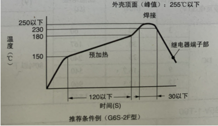 焊接推薦條件雖然顯示出了印刷電路板面的溫度曲線,但是各繼電器的條件可能會有所不同,因此請在對各規格加以確認的基礎上進行使用,在焊接之后,請勿立即浸漬到清洗液等冷卻液中,會損傷繼電器的密封性,如下圖所示:
