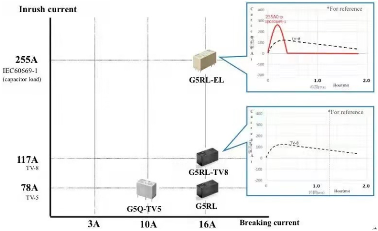 歐姆龍G5RL-U/-K線圈與接點間的絕緣沿面距離為8mm,具有較高的絕緣性,適用于TV-8額定規格。