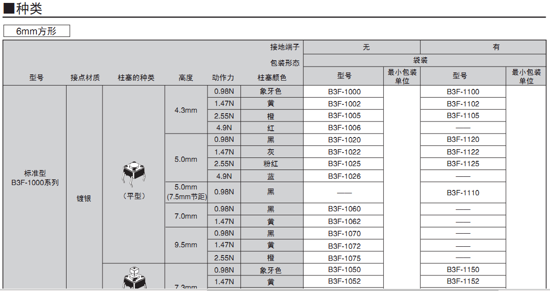 6mm方形、12mm方形具有橫向操作、高負載、鍍金型等全系列產品