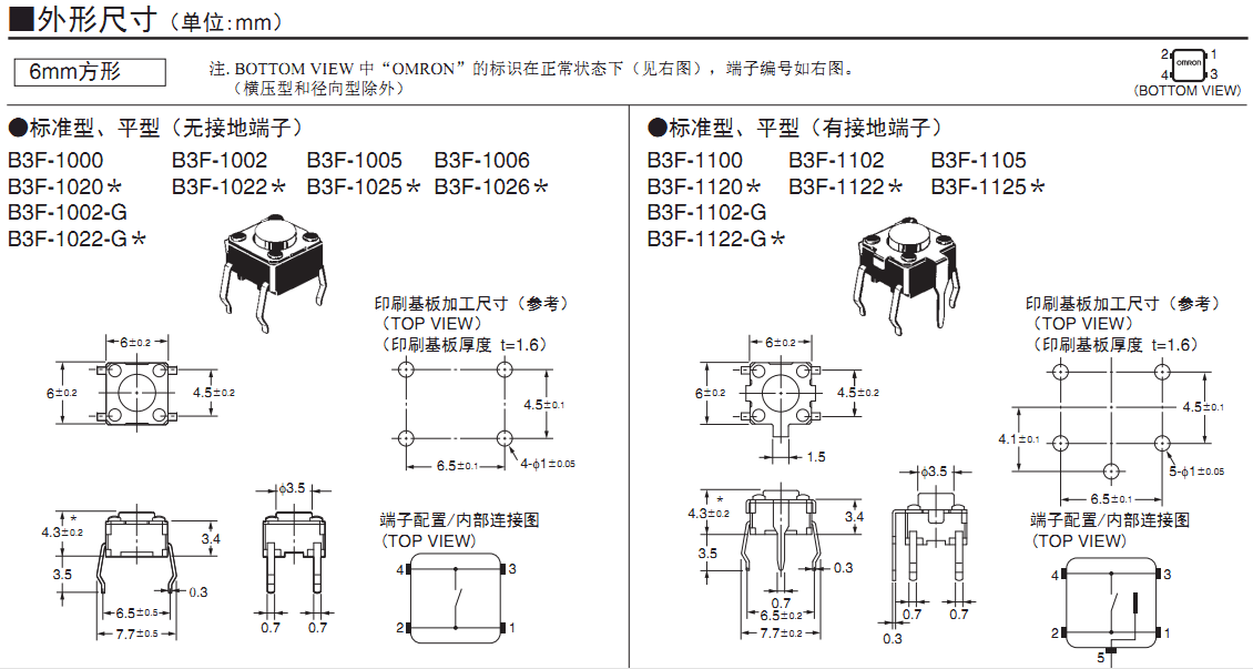 歐姆龍輕觸開關,B3F-1000,歐姆龍輕觸開關B3F