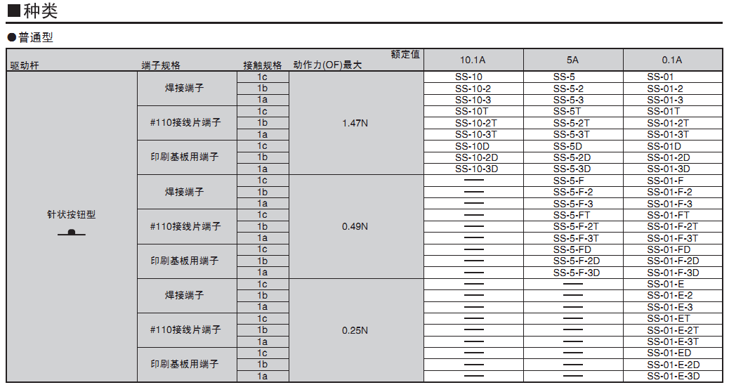 ? 備有0.1A~10.1A型的各個品種,產品規格齊全,是歐姆龍暢銷的開關。