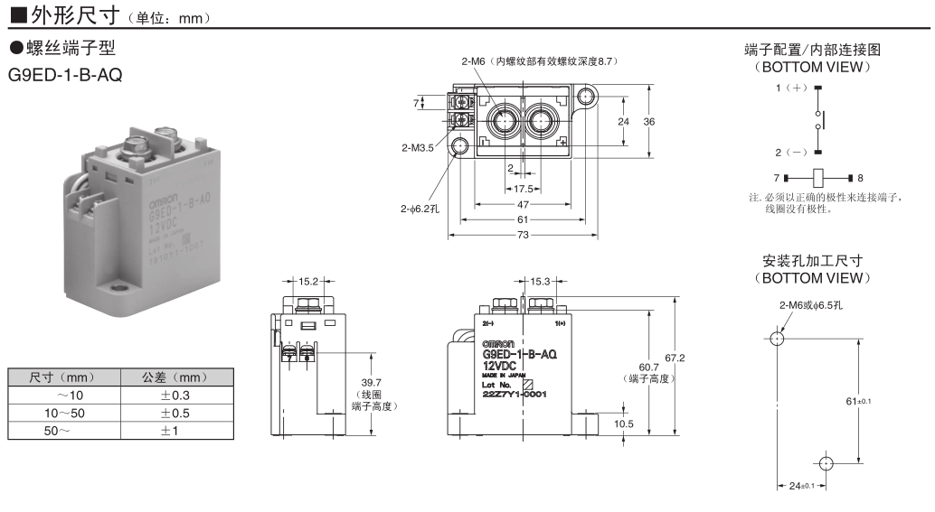 高67.2mm×寬36mm×長73mm的小型繼電器,觸點(diǎn)最大切換能力為300A。