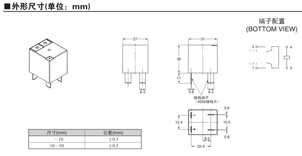 實現接點額定值為DC400V 15A的小型DC功率繼電器