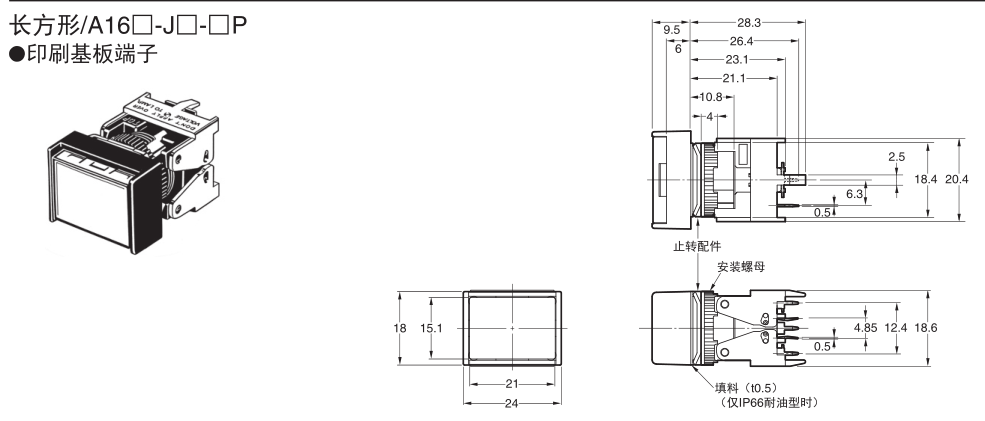 • A16L-JRM-5D-1P按鈕開關(分離式)