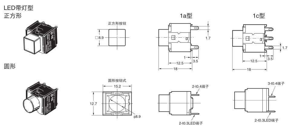 A3AA-90K1-00R方形按鈕開關