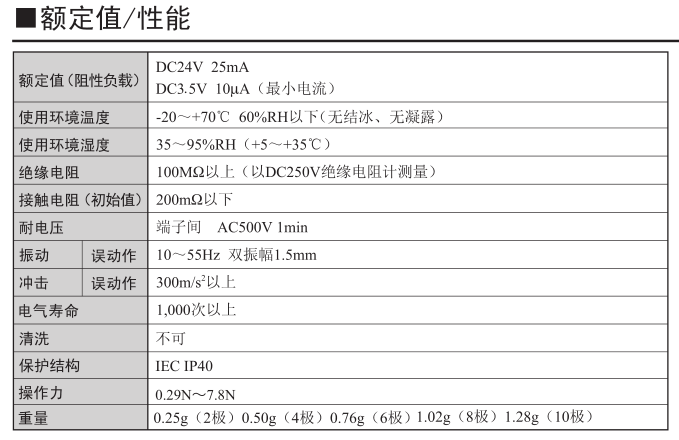 接點(diǎn)部分為鍍金雙接點(diǎn),通過動(dòng)作的自清潔構(gòu)造,確保了高可靠性。
