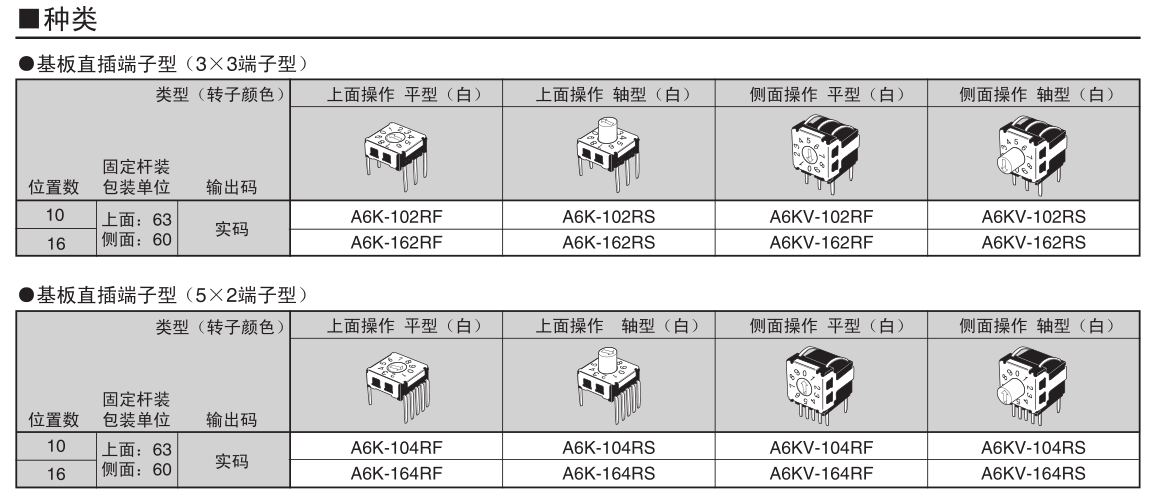 具有表面安裝端子、直插型端子的兩種型號對應。還提供側面操作型產品