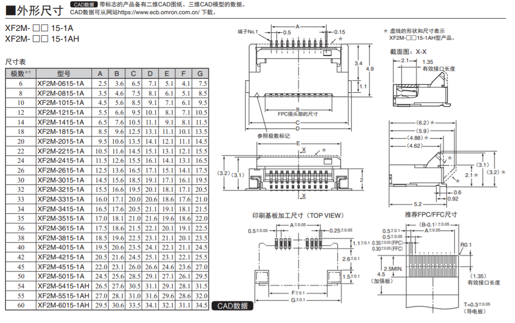 接點構(gòu)造備有雙面觸點型和上觸點型兩種。 (上接點型只有0.5mm間距)