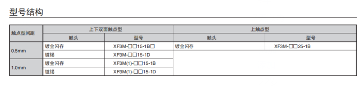 接點構(gòu)造備有雙面觸點型和上觸點型兩種。 (上接點型只有0.5mm間距)