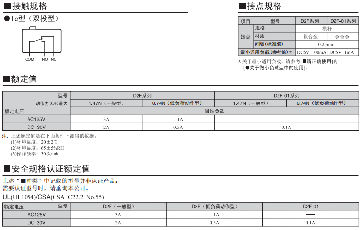 歐姆龍超級小型基本開關