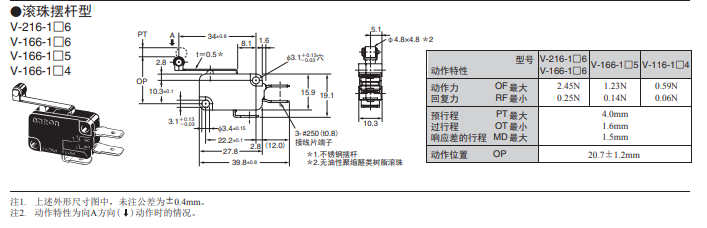 | #250接線片端子(C) | SPDT | 2.45N | V-216-1C6 | V-166-1C6 | |