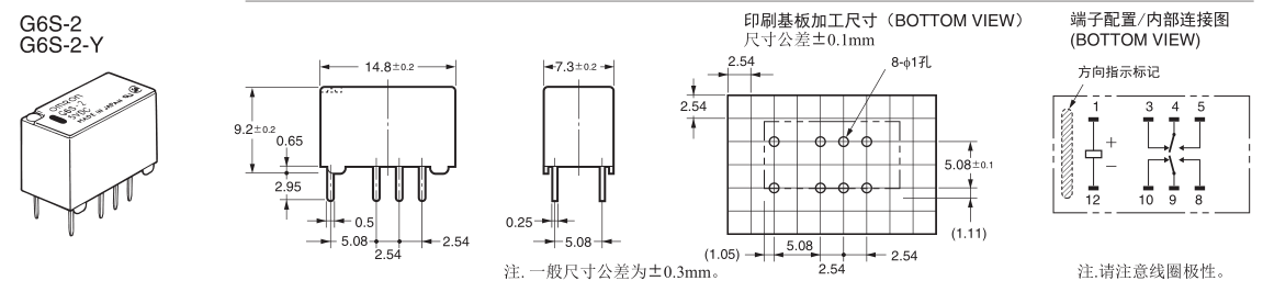 歐姆龍信號繼電器,G6S-2 DC12V,2A小型信號繼電器