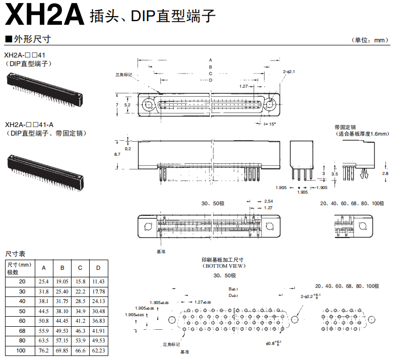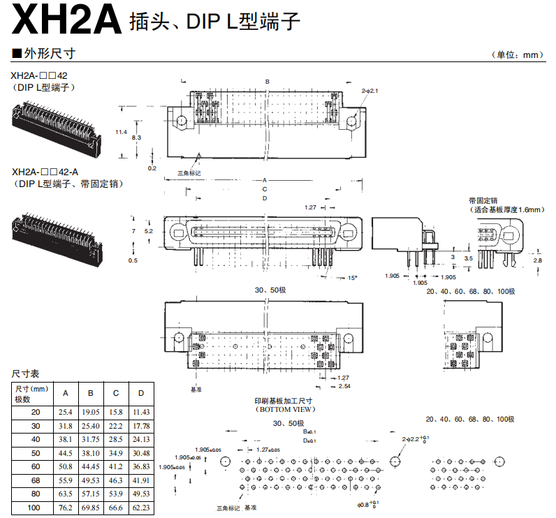XH2A系列 半間距連接器(基板對基板連接用(帶耳))