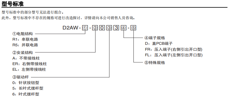 • D2AW-R 電阻內(nèi)置型微動開關(guān)